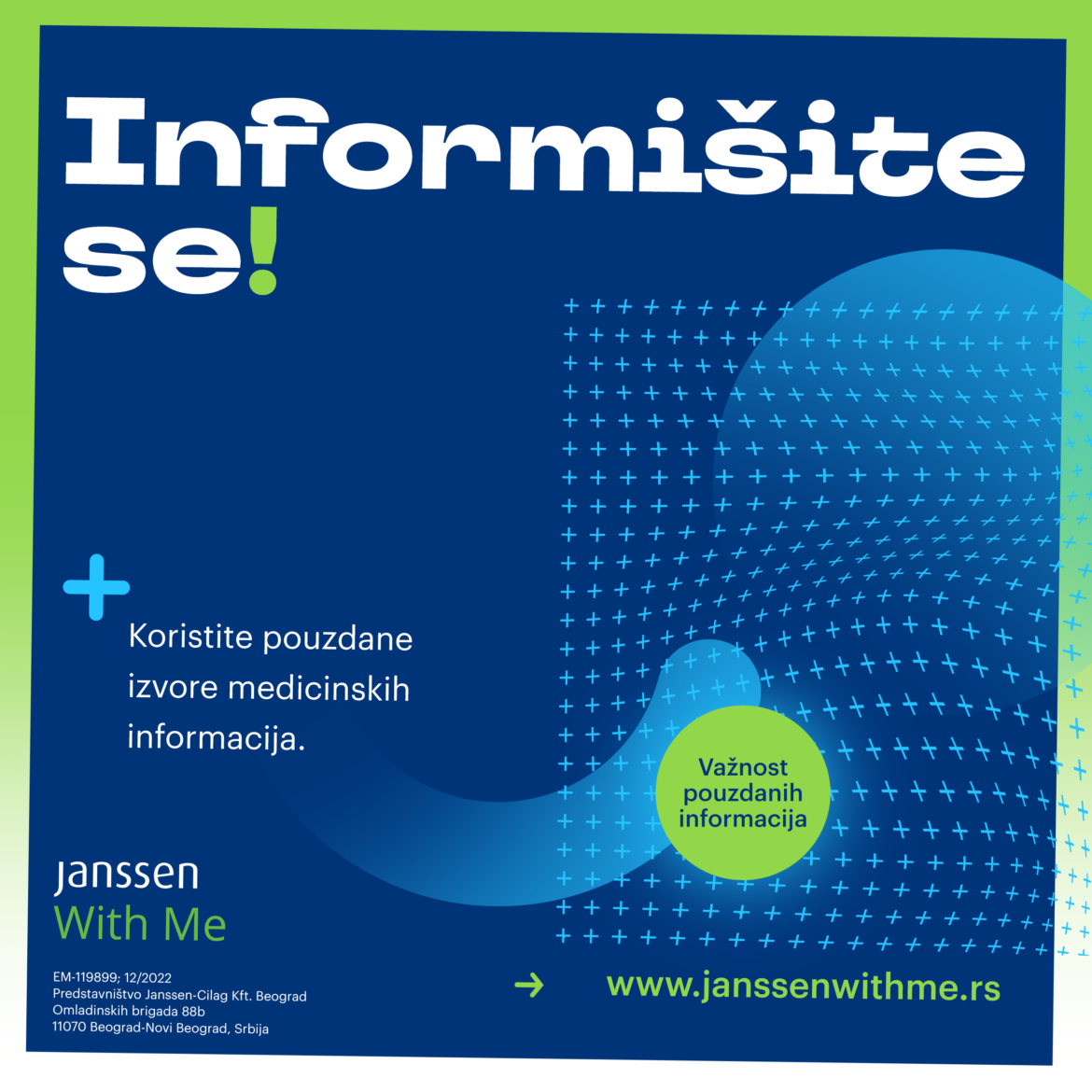 Kako bi doprinela boljoj informisanosti pacijenata, farmaceutska kompanija Janssen pokrenula je platformu JanssenWithMe. Izvor pouzdanih informacija biće dostupan pacijentima, njihovim porodicama, zdravstvenim radnicima na zvaničnoj internet stranici www.janssenwithme.rs.