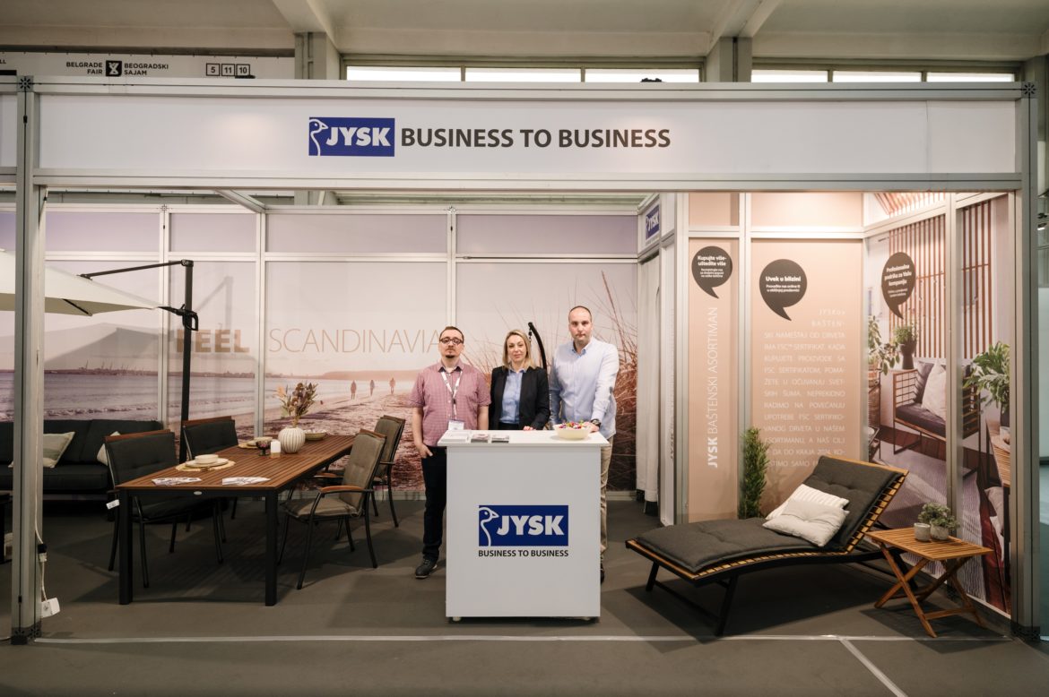 U okviru 18. po redu Međunarodnog sajma hotelsko-ugostiteljske opreme HORECA-OPREMA koji se odvija paralelno sa Međunarodnim beogradskim sajmom turizma, od 23. do 26. februara, kompanija JYSK izložila je najnovija rešenja u održivom baštenskom nameštaju svojim B2B kupcima. Kompanija je krajem prošle godine otvorila Business-to-Business kancelariju u Srbiji, a ovo je prvi put da svoja održiva rešenja predstavlja svim klijentima koji imaju potrebu za opremanjem prostora. Svi proizvodi u okviru baštenskog nameštaja koje je JYSK predstavio inspirisani su Skandinavijom, održivim stilom života i prirodom, a pored toga, svi artikli iz ovog asortimana poseduju FSC™ sertifikat.