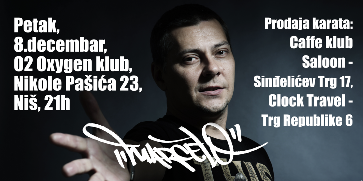 Marko Šelić Marčelo će sa svojim kompletnim bendom održati samostalni koncert u Nišu, u okviru turneje kojom ove godine obeležava 20 godina na sceni u petak, 8. decembra u O2 Event klubu Oxygen (Nikole Pašića 23), sa početkom u 21 čas.