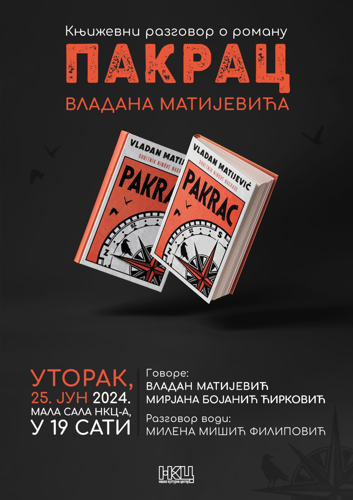 Niški kulturni centar organizuje književni razgovor o romanu „Pakrac“ Vladana Matijevića u utorak, 25. juna 2024. godine, u Maloj sali NKC-a u 19 sati.