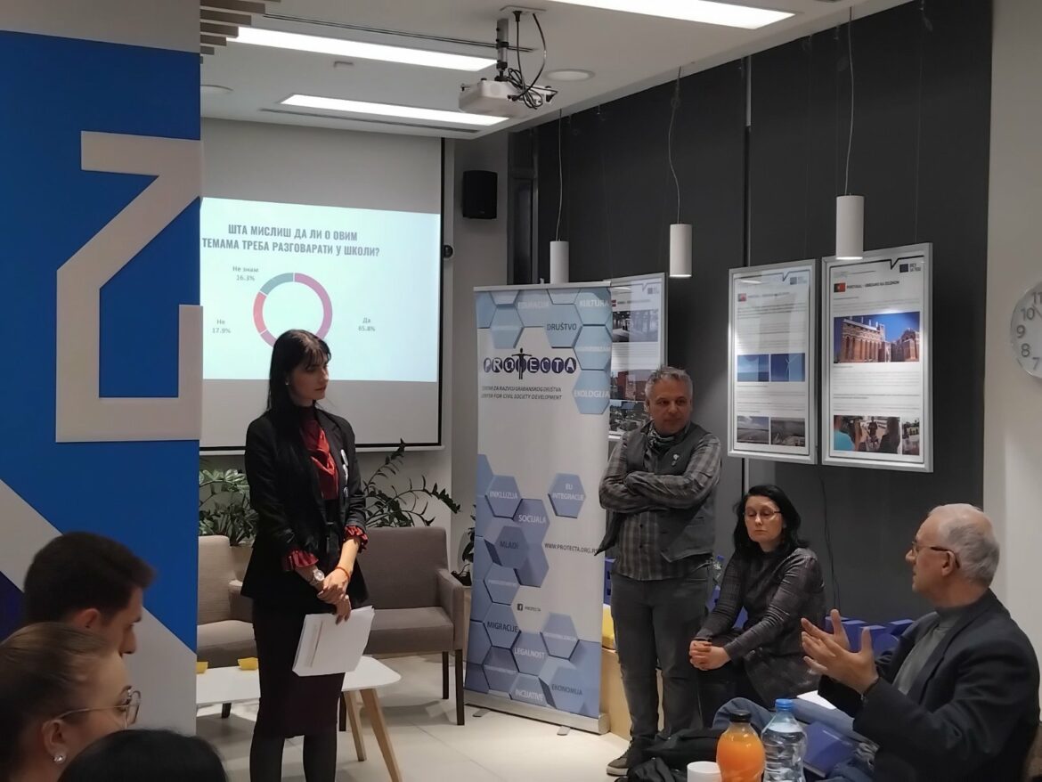 Na okruglom stolu predstavljeno je kvalitativno istraživanje “Sigurne veze: Perspektiva škola i organizacija”, koje je sprovela PROTECTA. Kroz istraživanje su definisane smernice za prevenciju nasilja u maloletničkim vezama, namenjene školama i organizacijama. Smernice će biti dostavljene srednjim školama i organizacijama civilnog društva u Nišu, Boru, Prokuplju, Kruševcu i Pirotu.