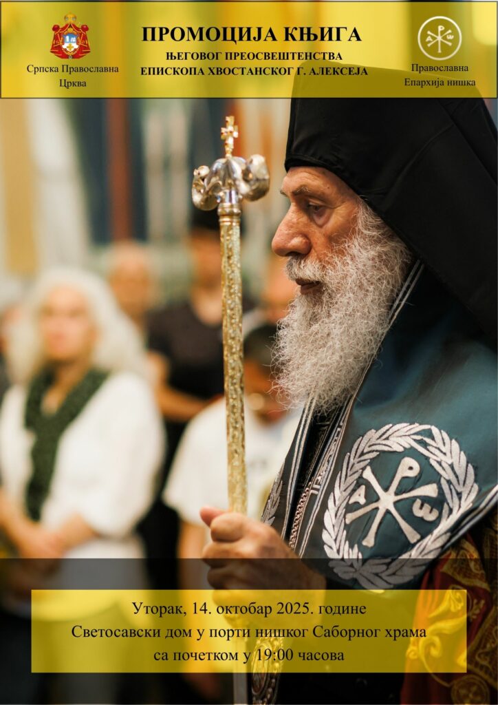 Srpska Pravoslavna Crkva – Pravoslavna Eparhija niška sa velikom radošću najavljuje dve značajne književne promocije koje će se održati u Svetosavskom domu u Nišu u oktobru 2025. godine. Pozivamo sve vernike, medije i građane da prisustvuju ovim važnim događajima.