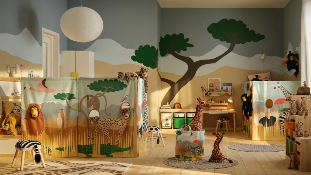 Najnovije IKEA istraživanje o igri otkriva nam da samo 51% dece smatra da ima dovoljno vremena za igru, dok više od polovine roditelja (54%) želi da provodi više vremena u igri sa svojim mališanima. SANDLÖPARE kolekcija, koja se sastoji od 29 proizvoda, budi maštu, podstiče igru i unosi istraživački duh u svakodnevni život. Pored plišanih majmuna, merkata i drugih životinja iz savane, uz ovu kolekciju stolice postaju zebre, tepisi se pretvaraju u zmije, a uz štepanu prostirku sa likom geparda i raznobojnu vreću za odlaganje, dečja soba pretvara se u pravi kamp u srcu savane.