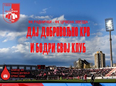 U petak 24. oktobra, prvih 20 koji dobrovoljno daju krv u Zavodu za transfuziju krvi Niš dobiće po jednu ulaznicu za utakmicu Radnički – Crvena zvezda.