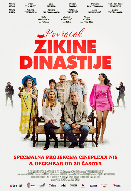 Specijalna projekcija filma ,,Povratak Žikine dinastije ” uz prisustvo dela autorske i glumačke ekipe filma zakazana je za petak, 5. decembar od 20 časova u Cineplexx Niš bioskopu.