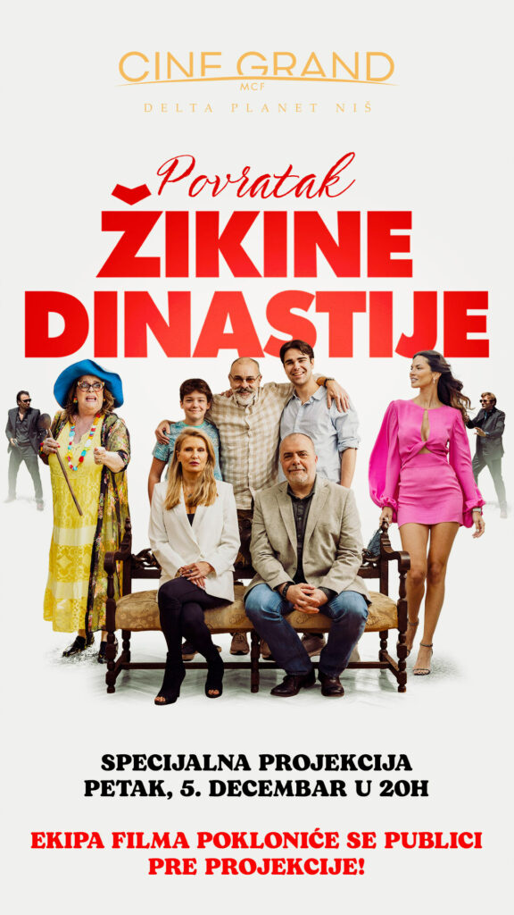 U bioskopu Cine Grand – Delta Planet Niš, biće održana specijalna projekcija filma „Povratak Žikine dinastije“, u petak, 5. decembra 2025. godine u 20.00 časova.