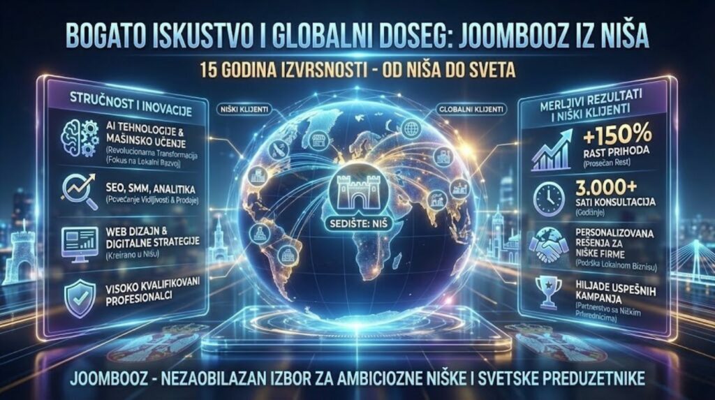 Da li ste znali da se jedan od globalnih lidera u digitalnom marketingu nalazi baš ovde, u Nišu? Kompanija Joombooz već 15 godina diktira trendove u online svetu, postavljajući standarde ne samo na jugu Srbije, već i širom planete.