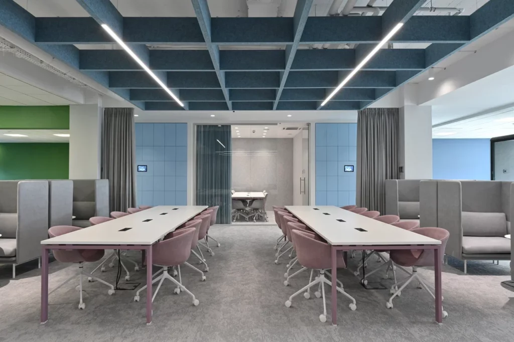 Fleksibilne radne stanice i visoki stolovi omogućavaju promenu položaja i ritma rada, tako da prostor prati dinamiku zaposlenog, a tehnologija – aplikacija za rezervaciju i kontrolu osvetljenja i temperature, rezervaciju parking mesta i pozivanje IT podrške – uklanja logističke prepreke i daje slobodu izbora. Spomenuta aplikacija pruža i analitiku u realnom vremenu, pa tako kompanija može da vidi kako zaposleni koriste prostor i da prilagodi broj radnih mesta prema stvarnim potrebama.