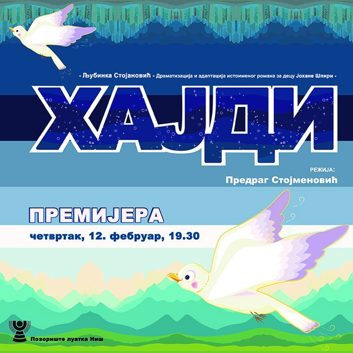 U niškom Pozorištu lutaka u četvrtak, 12. februara u 19.30 održaće se premijera predstave „Hajdi“, dok je prva repriza planirana za nedelju, 22. februara u 11.30 sati.