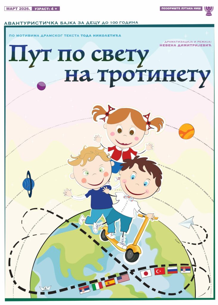 U petak, 27. marta na Svetski dan pozorišta u niškom Pozorištu lutaka održaće se premijera predstave „Put po svetu na trotinetu“ u režiji Nevene Dimitirijević.