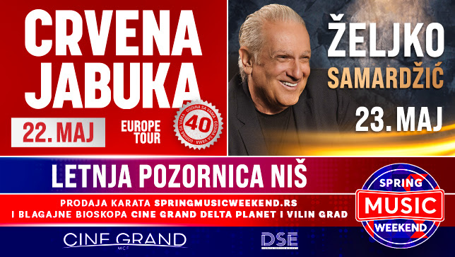 Ulaznice će biti dostupne uskoro i na sajtu springmusicweekend.rs, i na blagajnama bioskopa Cine Grand Delta Planet i Vilin Grad.