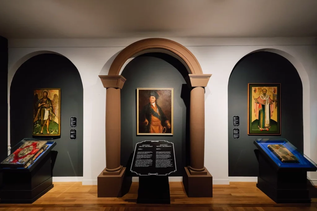 Interesovanje publike podjednako su privukli originalni eksponati: istorijski predmeti iz crkava i manastira, slike i gravure, knjige i oružje, kao i pažljivo osmišljen prostorni i narativni koncept izložbe. Na samom ulazu pogledi posetilaca zaustavljali su se na brodu izgrađenom po uzoru na fregate iz doba Petra Velikog, koji je predstavljao snažan vizuelni i simbolički akcenat postavke. Decu su pak posebno privlačili interaktivni sadržaji, pomoću kojih su, igrajući se, istovremeno mogli i nešto novo da nauče. Ovakav pristup, koji integriše savremene multimedijalne sadržaje, muzejske eksponate i umetničke instalacije u u jedinstvenu celinu, do sada nije viđen u Srbiji.