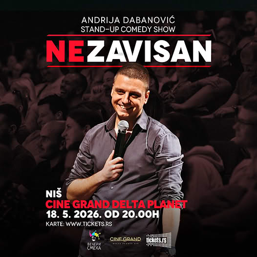 Niška publika imaće priliku da uživa u vrhunskom humoru jednog od najpopularnijih komičara regiona. U nedelju, 18. maja, sa početkom u 20 časova, bioskop Cine Grand Delta Planet postaće epicentar smeha kada na scenu stupi Andrija Dabanović sa svojim novim stand-up projektom pod nazivom „Nezavisan“.