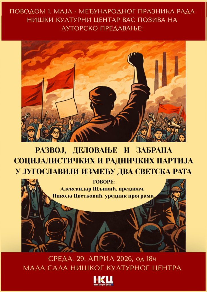 Povodom obeležavanja Prvog maja – Međunarodnog praznika rada, Niški kulturni centar (NKC) pripremio je poseban program za sve ljubitelje istorije, sociologije i političke teorije. U duhu tradicije koja slavi prava radnika i borbu za socijalnu pravdu, u sredu, 29. aprila 2026. godine, sa početkom u 18 sati, u Maloj sali NKC-a biće održano stručno autorsko predavanje koje osvetljava jedan od najdinamičnijih perioda naše prošlosti.